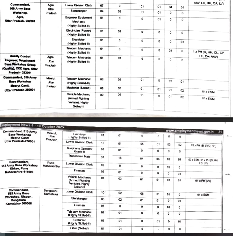 इस भर्ती के तहत कुल 194 पदों पर मध्यप्रदेश सहित अन्य स्थानों के लिए नियुक्ति की जाएगी। Army DG EME Group C Recruitment 2025 Notification को 29 सितंबर 2025 को जारी किया गया है, जबकि आवेदन 04 अक्टूबर 2025 से 24 अक्टूबर 2025 तक किए जा सकते हैं।