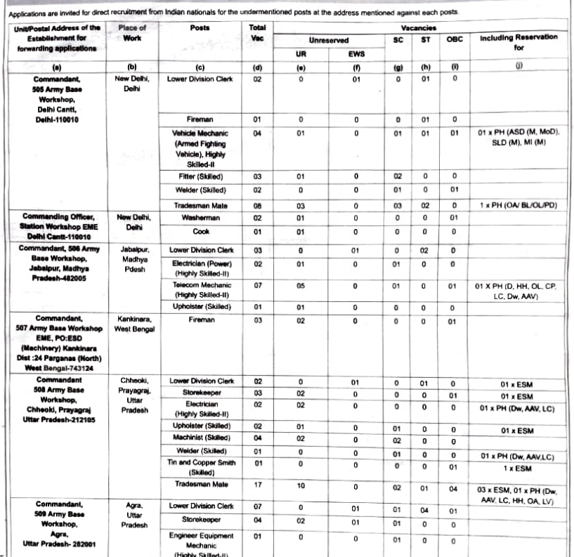 Indian Army Directorate General of Electronic and Mechanical Engineers (DG EME) ने ग्रुप C पदों पर भर्ती के लिए नवीनतम अधिसूचना जारी की है। यह उन युवाओं के लिए सुनहरा अवसर है जो भारतीय सेना में शामिल होकर देश की सेवा करना चाहते हैं।
