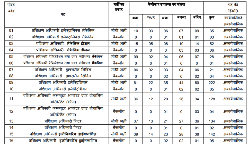 MP ITI Training Officer (TO) Vacancy Bharti 2026, एमपी आईटीआई ट्रेनिंग ऑफिसर भर्ती पदों का विवरण
